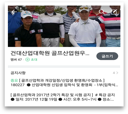 - 골프 월례회(동문들과의 결속력 강화)
